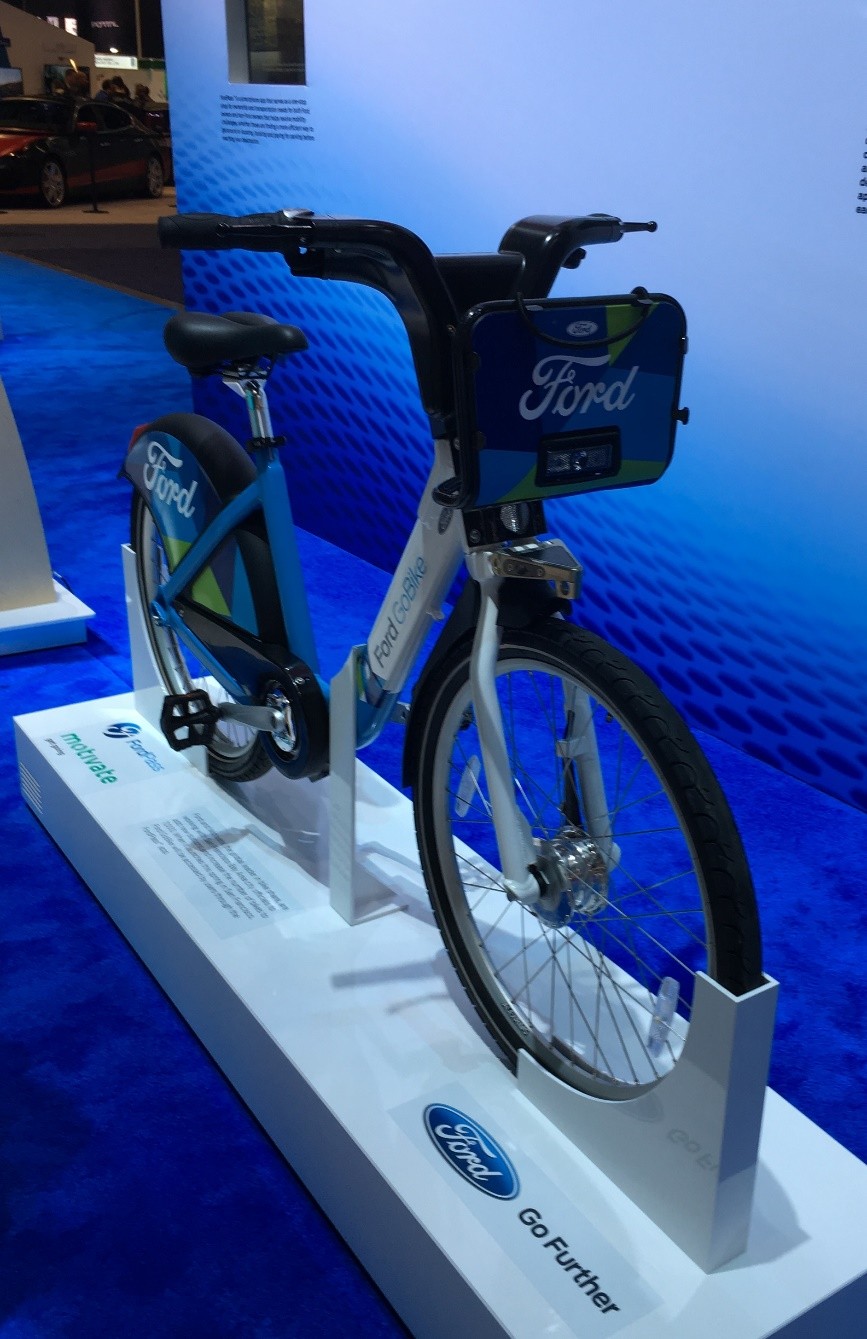 在自動駕駛方面,克萊斯勒在過去一直落于其他競爭對手。去年克萊斯勒和谷歌簽署協議,是美國第一家主要車商成為谷歌的Robot Car的OEM伙伴,這也許是克萊斯勒擔心落后出局的應對舉措。這次它展出了一輛很酷的、充滿未來感的概念車Portal,一輛自動駕駛功能的電動minivan。福特一口氣宣布了五年內七輛電動車和混動車的量產計劃,甚至展出了兩款自動駕駛的自行車(福特哥是不是走得太遠了?)